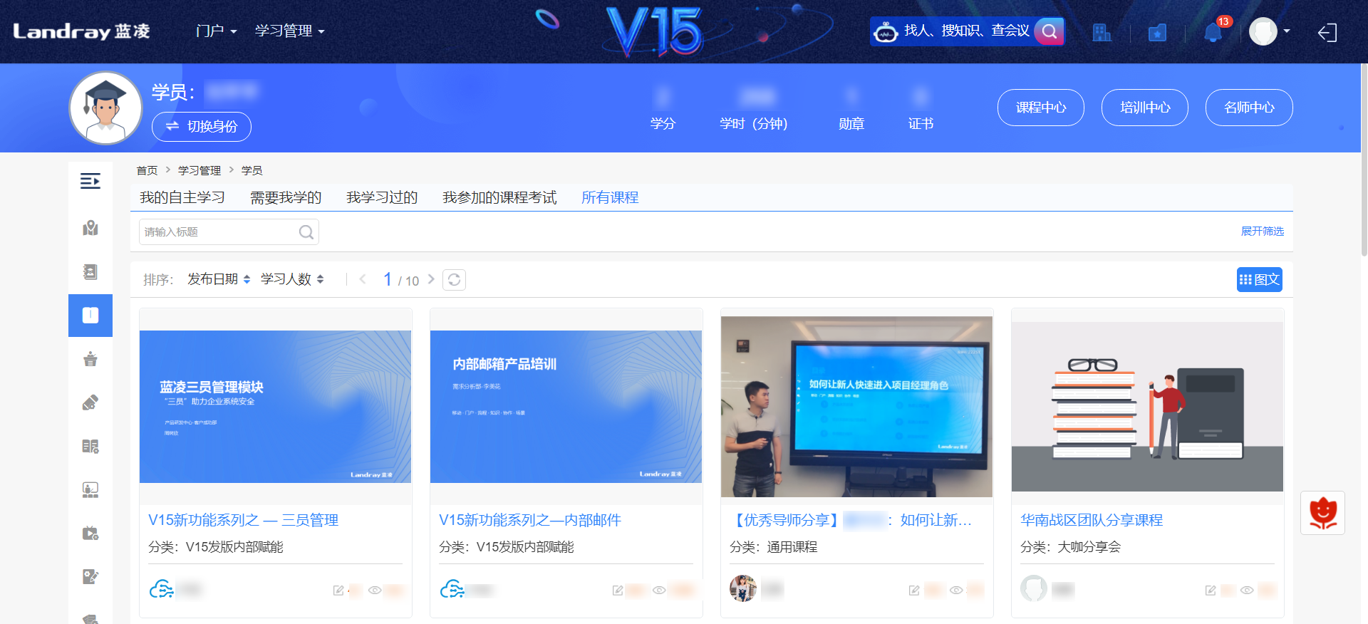 蓝凌拥有专业的知识管理、培训学习专家团队,可帮助企业共同梳理构建一体化培训学习体系,涵盖公司动态、专题课程、大咖讲堂、培训日历、每日一考、直播课堂等多板块内容,为员工提供丰富的课程资源。此外,培训学习平台可与知识管理平台全面对接,帮助企业快速沉淀、共享优秀知识经验。